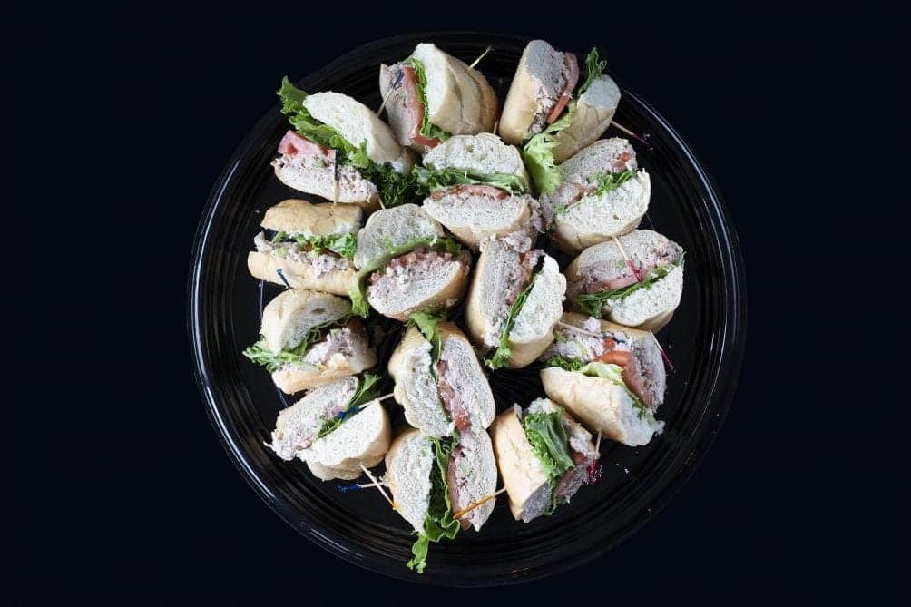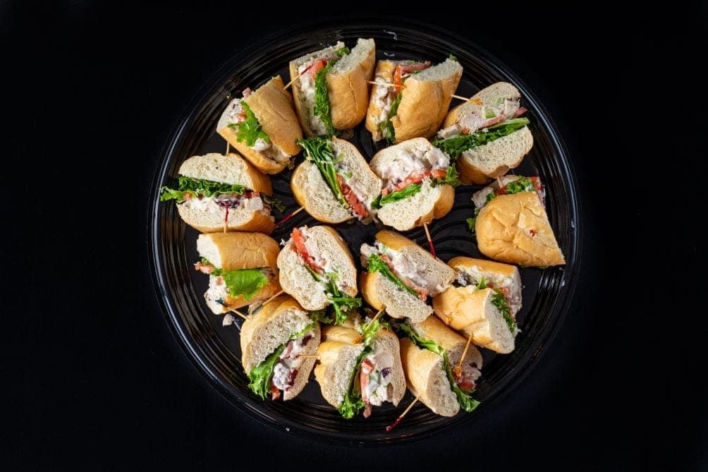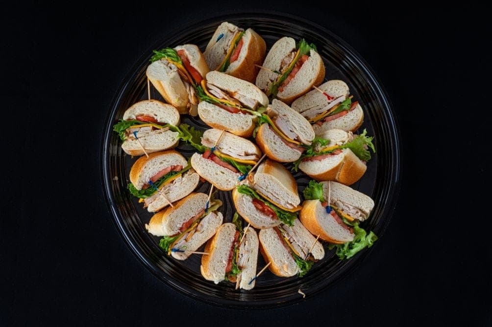 Our Sandwich Lunch Platters are perfect for fueling any crowd. Each platter includes a generous sandwich served with chips and a chocolate chip cookie — no one leaves hungry. Choose from hearty classics like the Roast Beef with horseradish cream, the Italian stacked with salami and pepperoni, or the fresh and flavorful California Turkey with avocado and bacon.