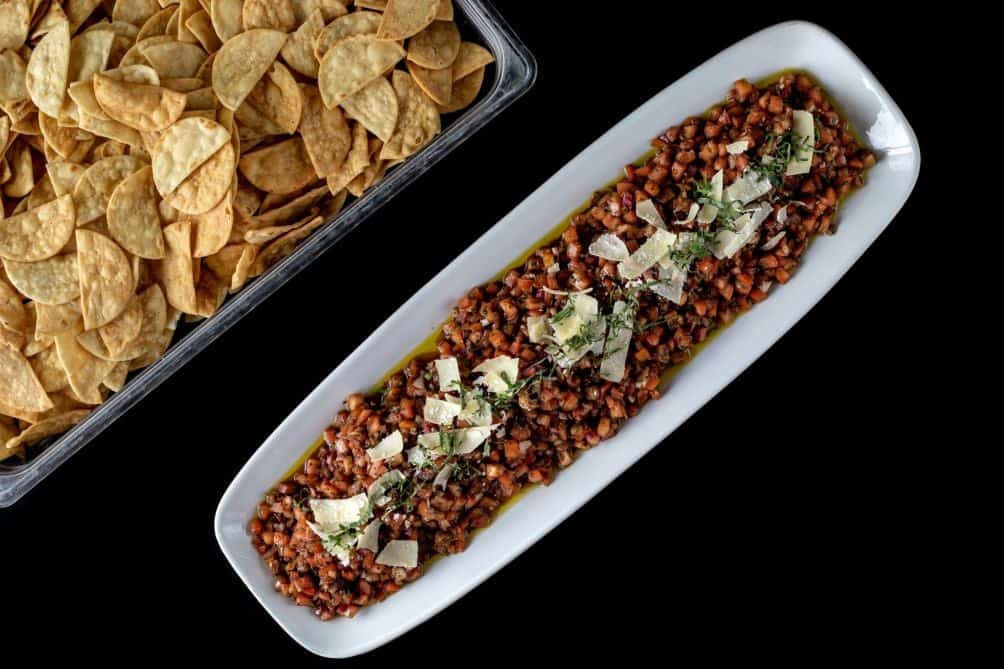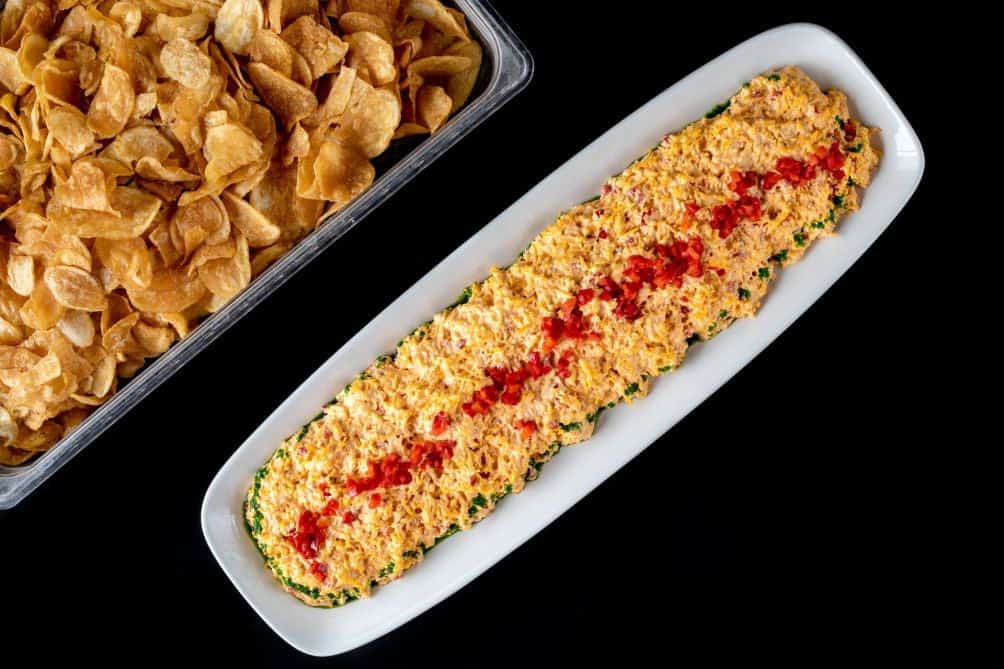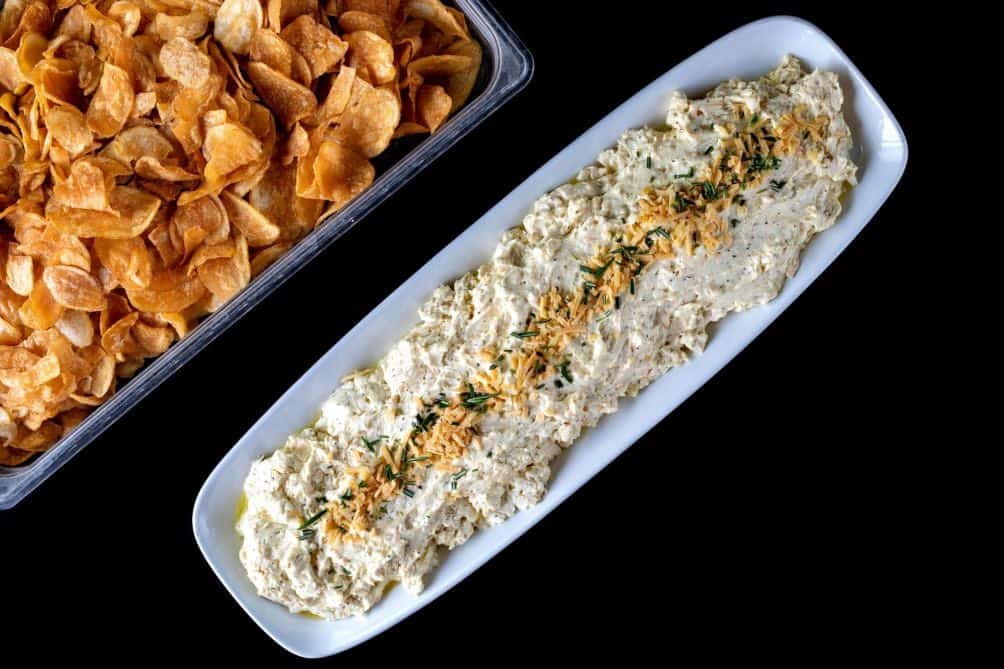 Keep guests satisfied between meals with our catered snack trays — perfect for meetings, mixers, and casual events. Choose from crisp crudités with classic dips, seasonal fresh fruit, savory meat and cheese assortments, or our house-made kettle chips with cipollini onion dip.
